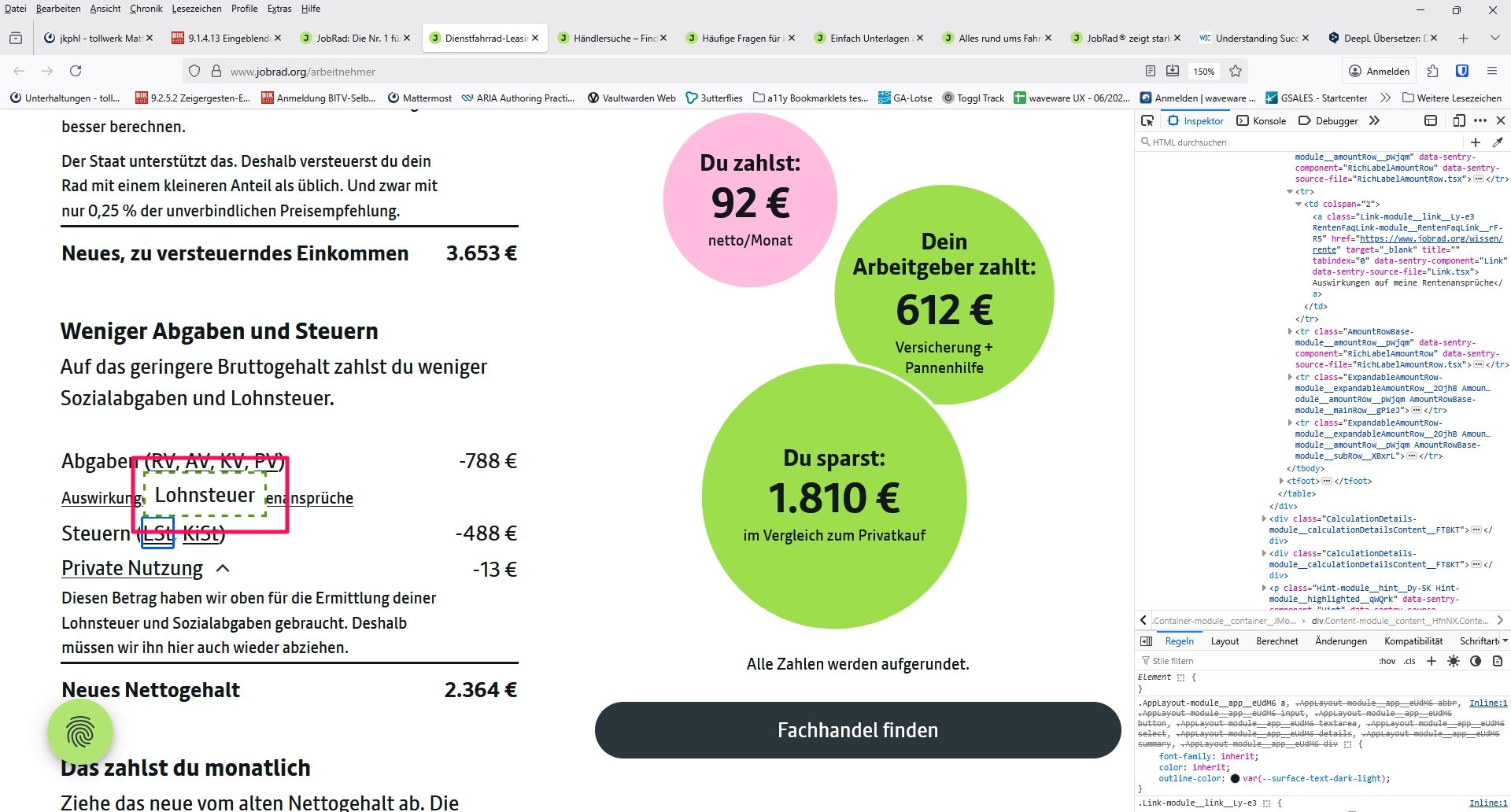 <ul>einaria-labelsetzen, und mithilfe dieser Beschriftung mehr Kontext liefern, z. B.aria-label="Ergebnis des Jobrad-Rechners". Dies gilt in der Ansicht für große Darstellungsgrößen auch für die drei interaktiven<svg>unter der Berechnung.1 Anhänge