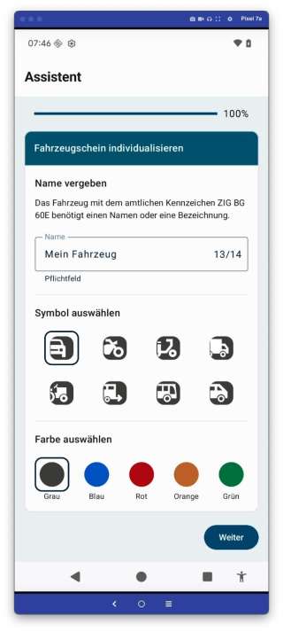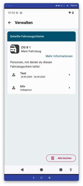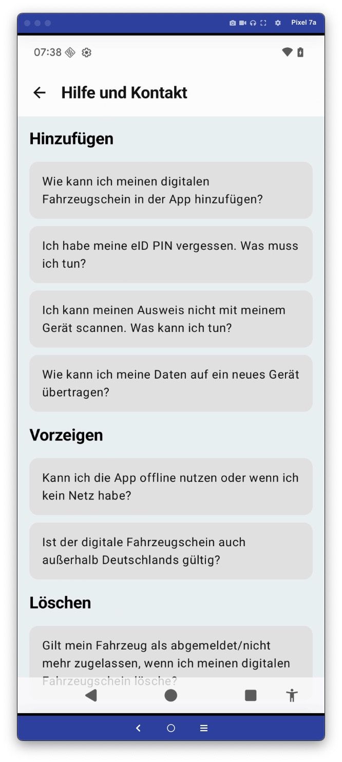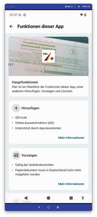 | Ansicht 5: Digitalen Fahrzeugschein hinzufügen | 37 Prüfschritte | 0 Prüfschritte | 73 Prüfschritte |