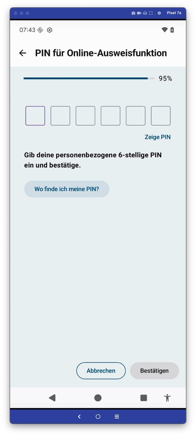 Ansicht 8 — PIN für Online-Ausweisfunktion