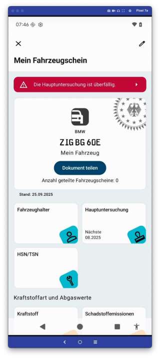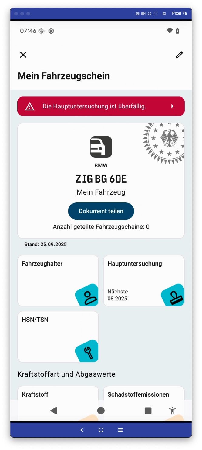 Ansicht 5 — Digitalen Fahrzeugschein hinzufügen