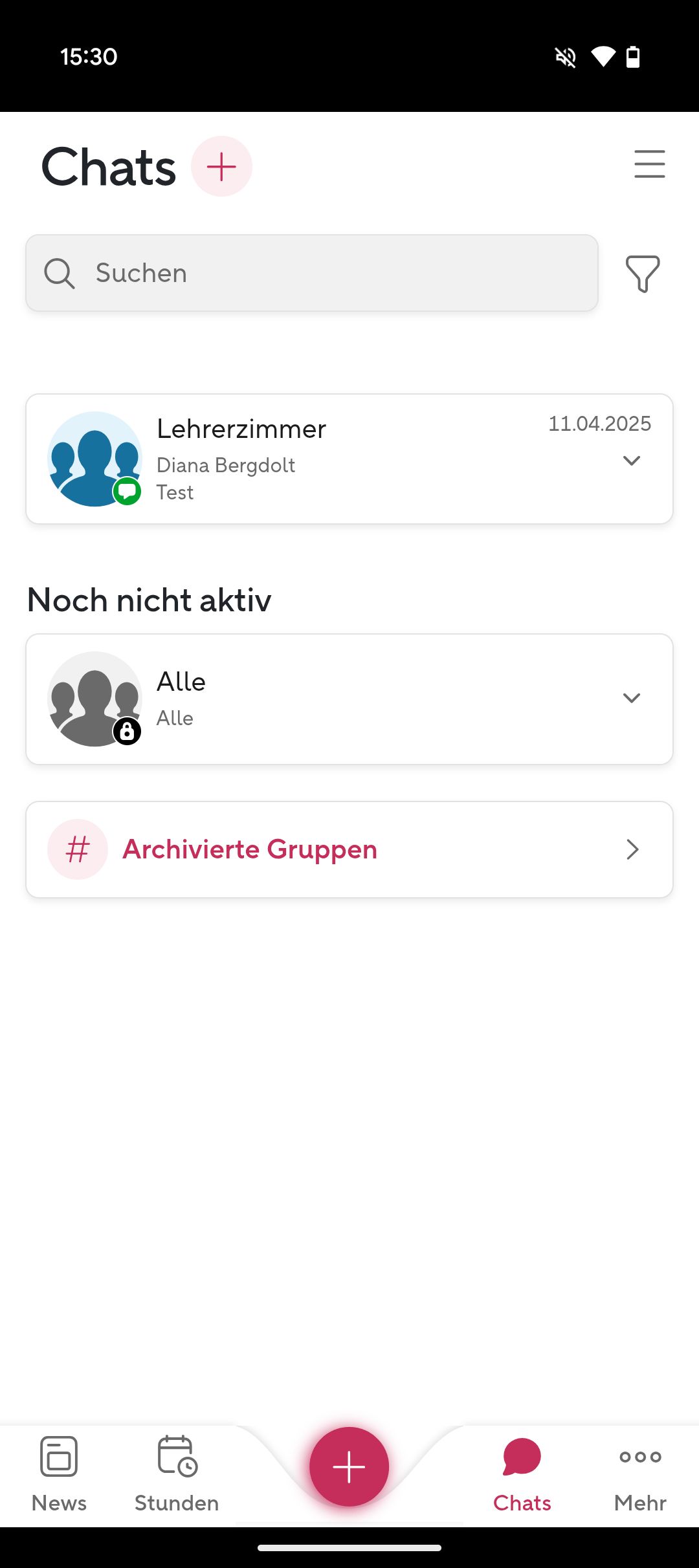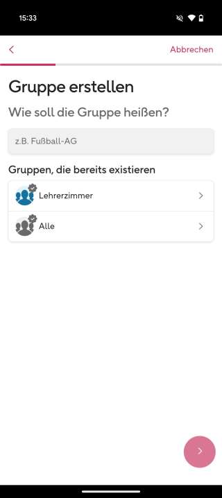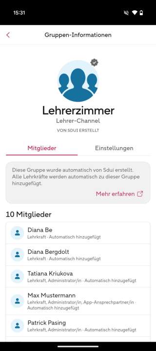 Ansicht 3 — Chat (Gruppeninfo)Im Chat "Lehrerzimmer" am oberen Bildschirmrand antippen