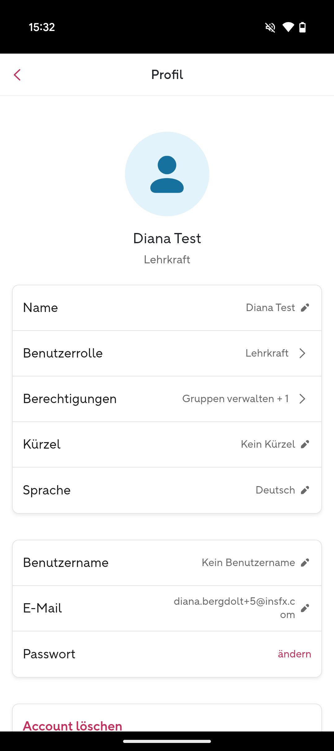Ansicht 17 — Account wechselnMehr -> Burger-Menü oben rechts