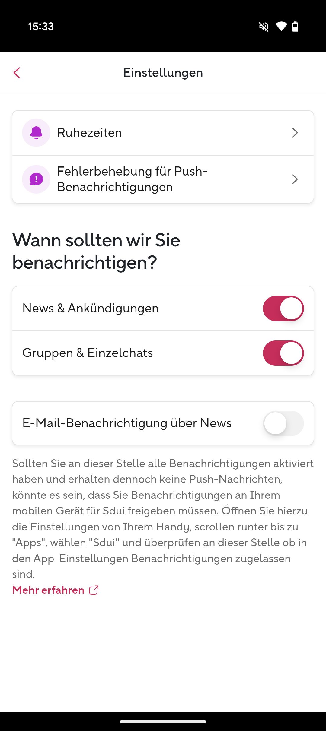 Hinweis ohne negative Auswirkung: Aktuell gibt es keine Darstellung der App im Darkmode. Um ein bessere, barrierefreie Nutzung zu gewährleisten, wird ein Darkmode empfohlen.