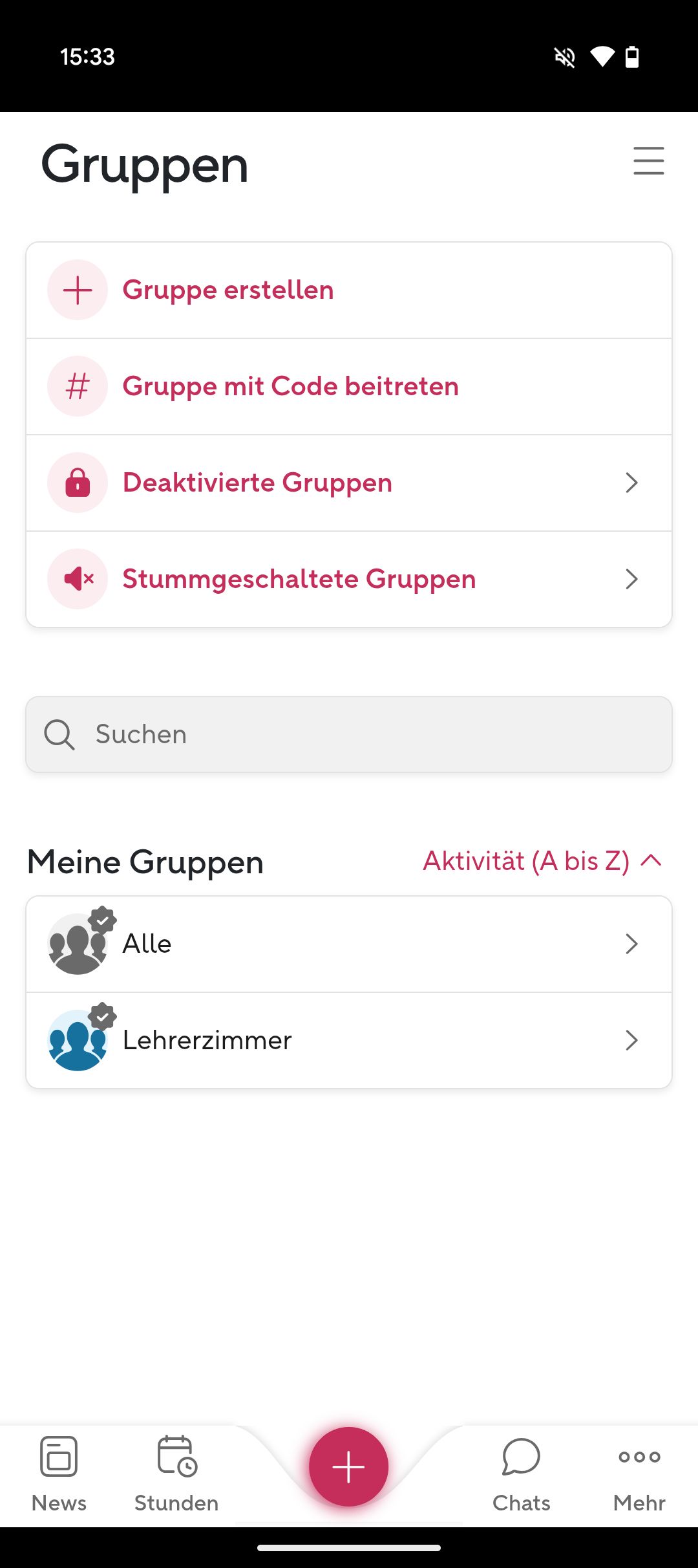 Ansicht 13 — Meine Gruppen (Übersicht)Mehr -> Burger-Menü oben rechts