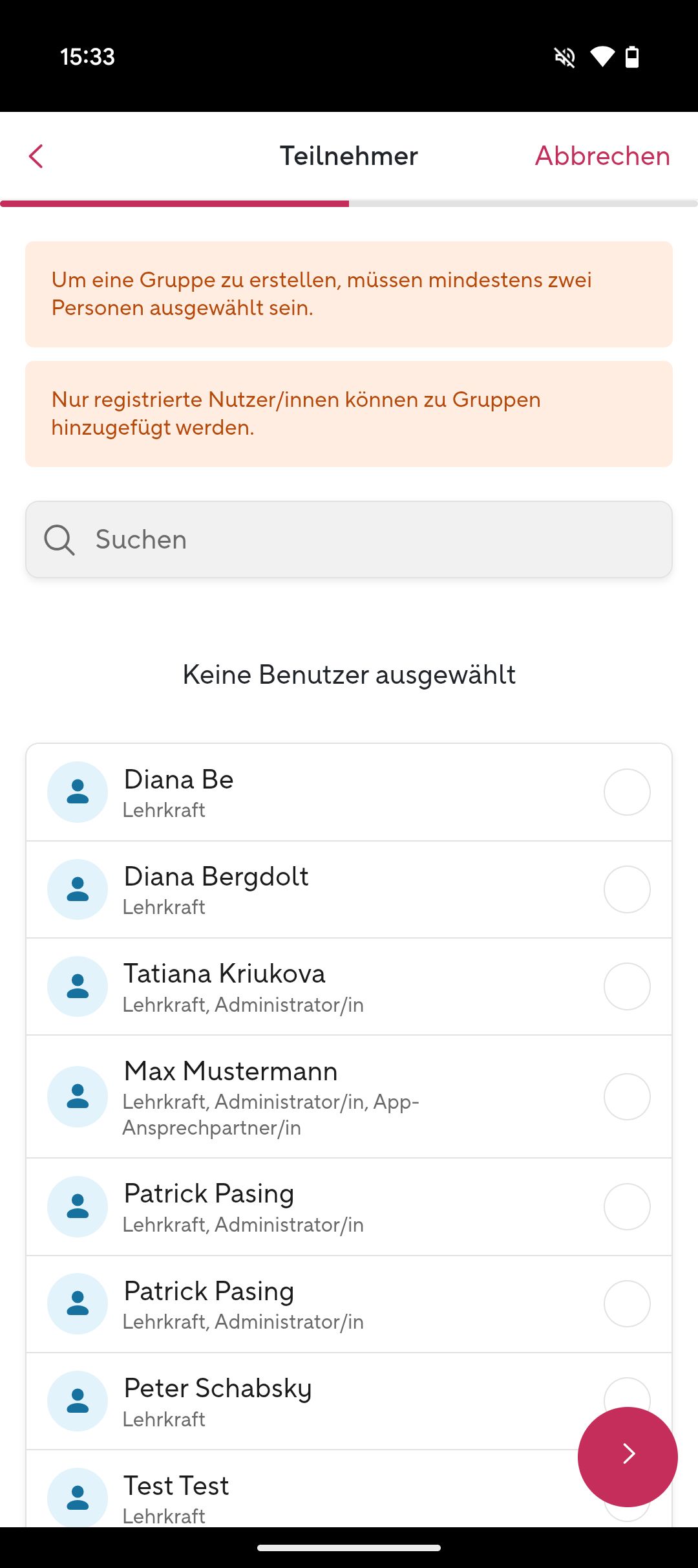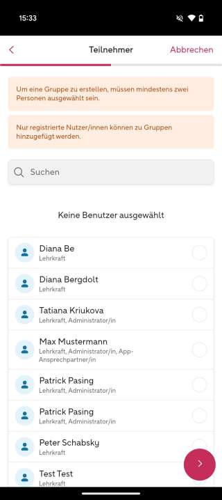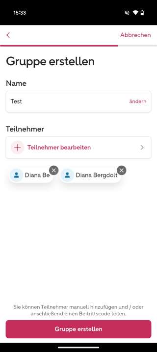 Ansicht 15 — Gruppe erstellen (Teilnehmer)