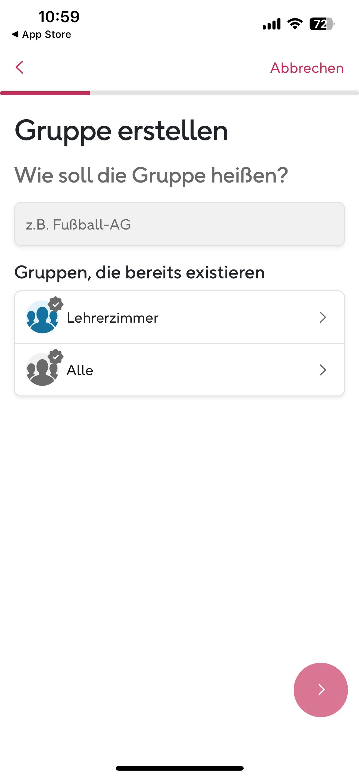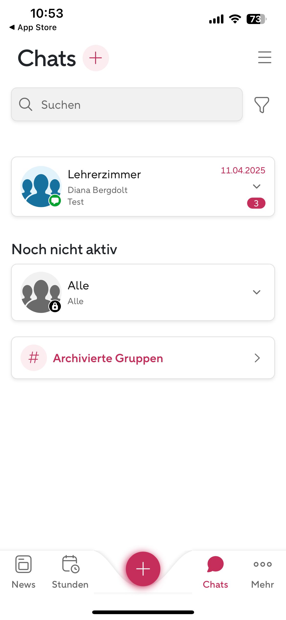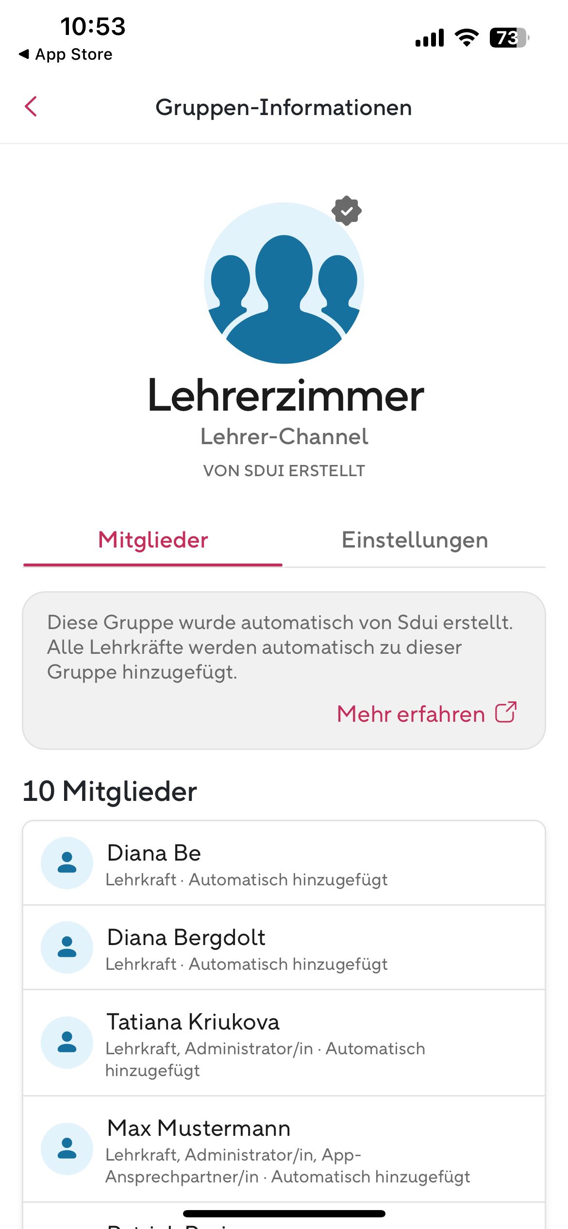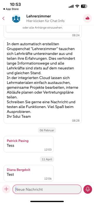 Ansicht 3 — Chat (Gruppeninfo)Im Chat "Lehrerzimmer" am oberen Bildschirmrand antippen