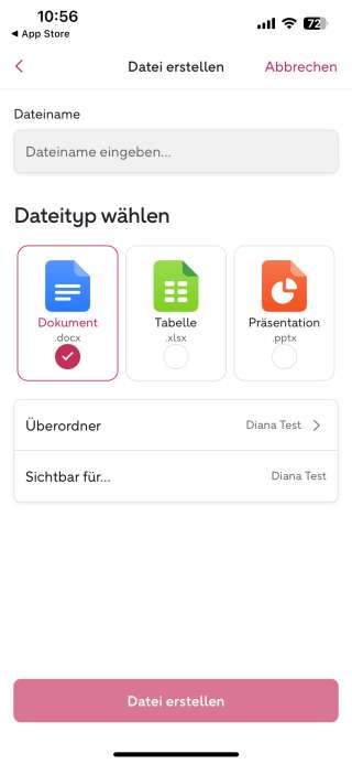 Ansicht 6 — Cloud (Ordner erstellen)Eigene Dateien -> Plus-Icon oben rechts