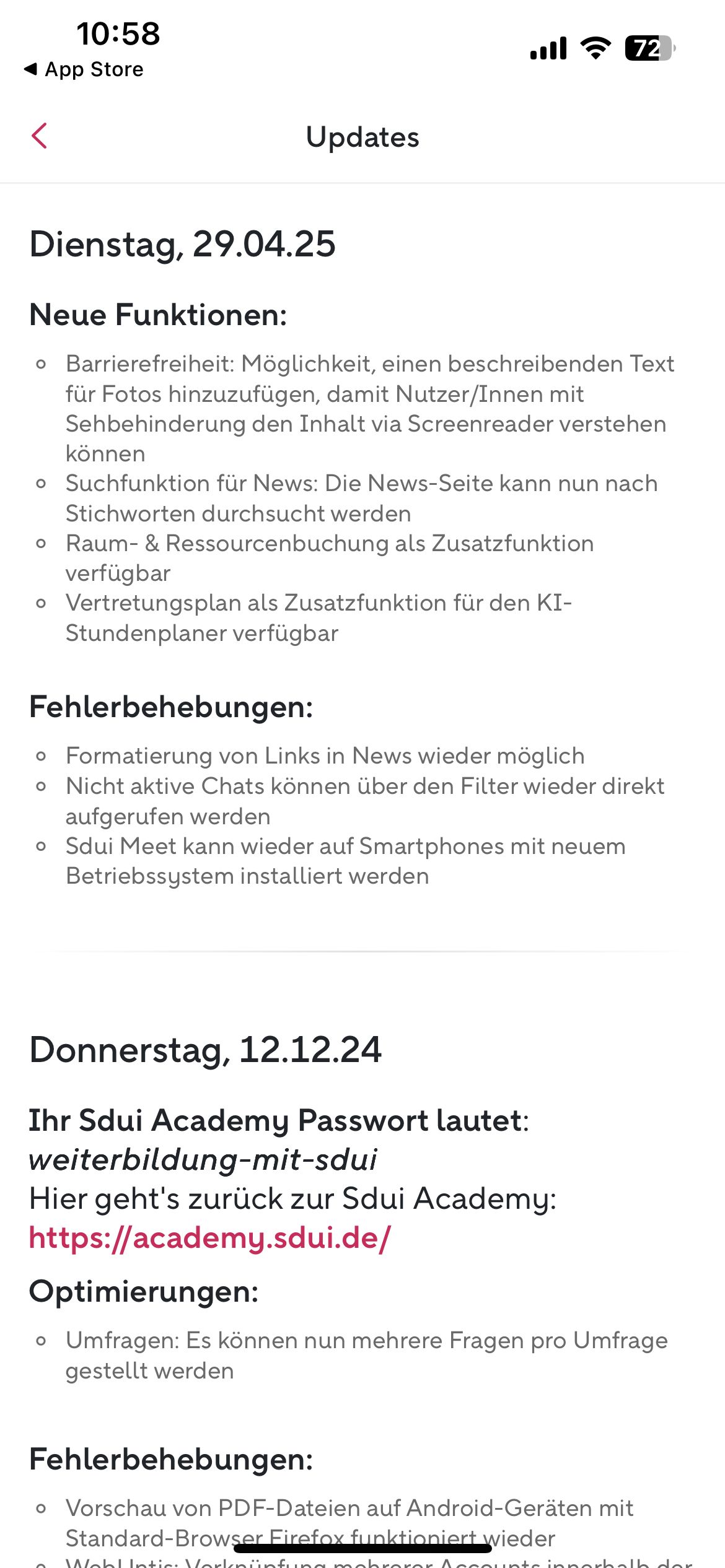 Hinweis ohne negative Auswirkung: Aktuell gibt es keine Darstellung der App im Darkmode. Um ein bessere, barrierefreie Nutzung zu gewährleisten, wird ein Darkmode empfohlen.