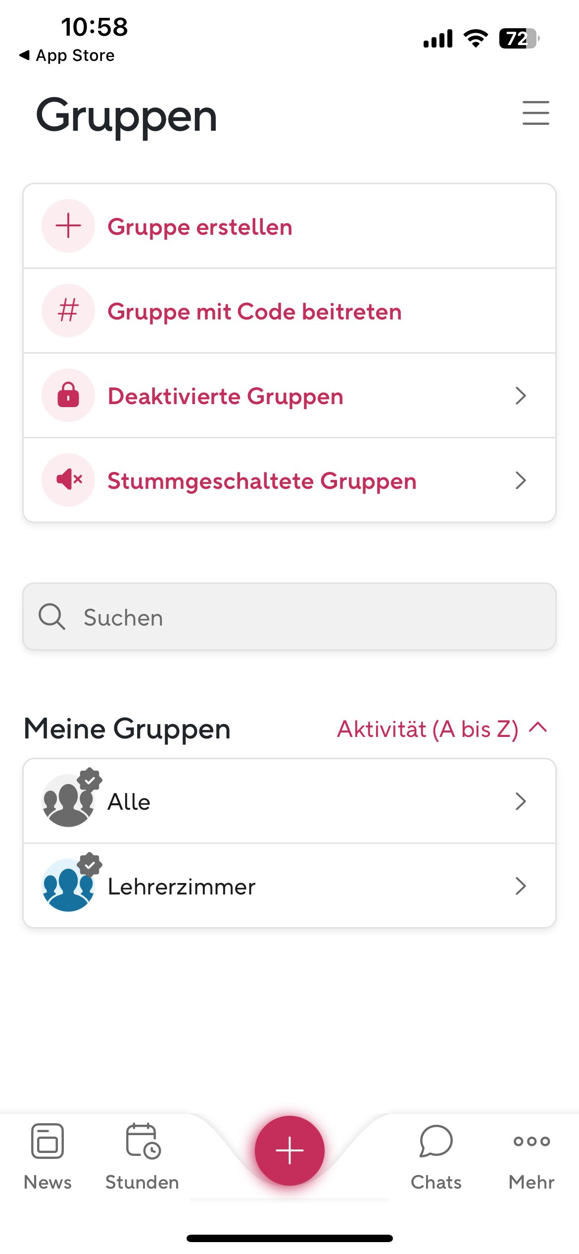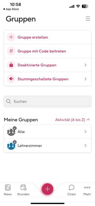 Ansicht 13 — Meine Gruppen (Übersicht)Mehr -> Burger-Menü oben rechts