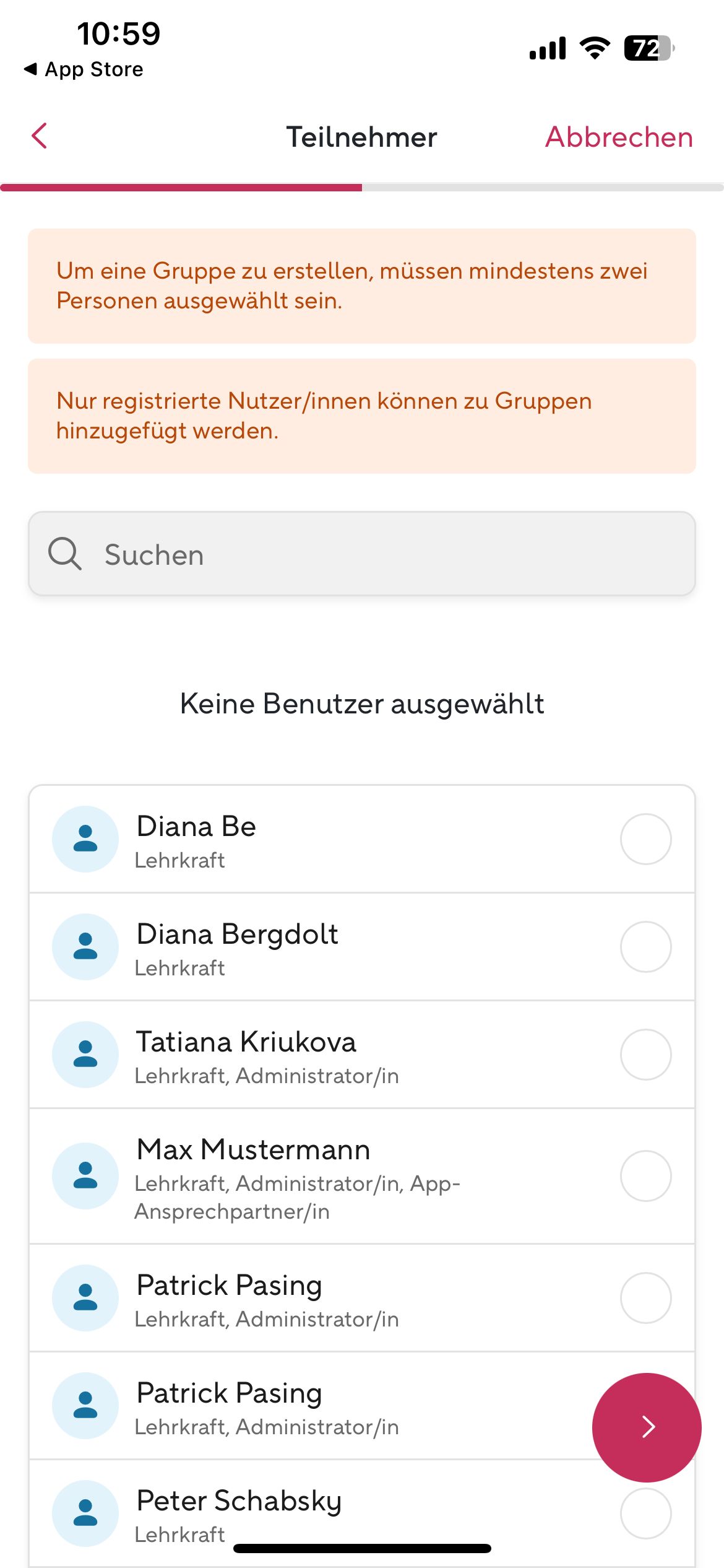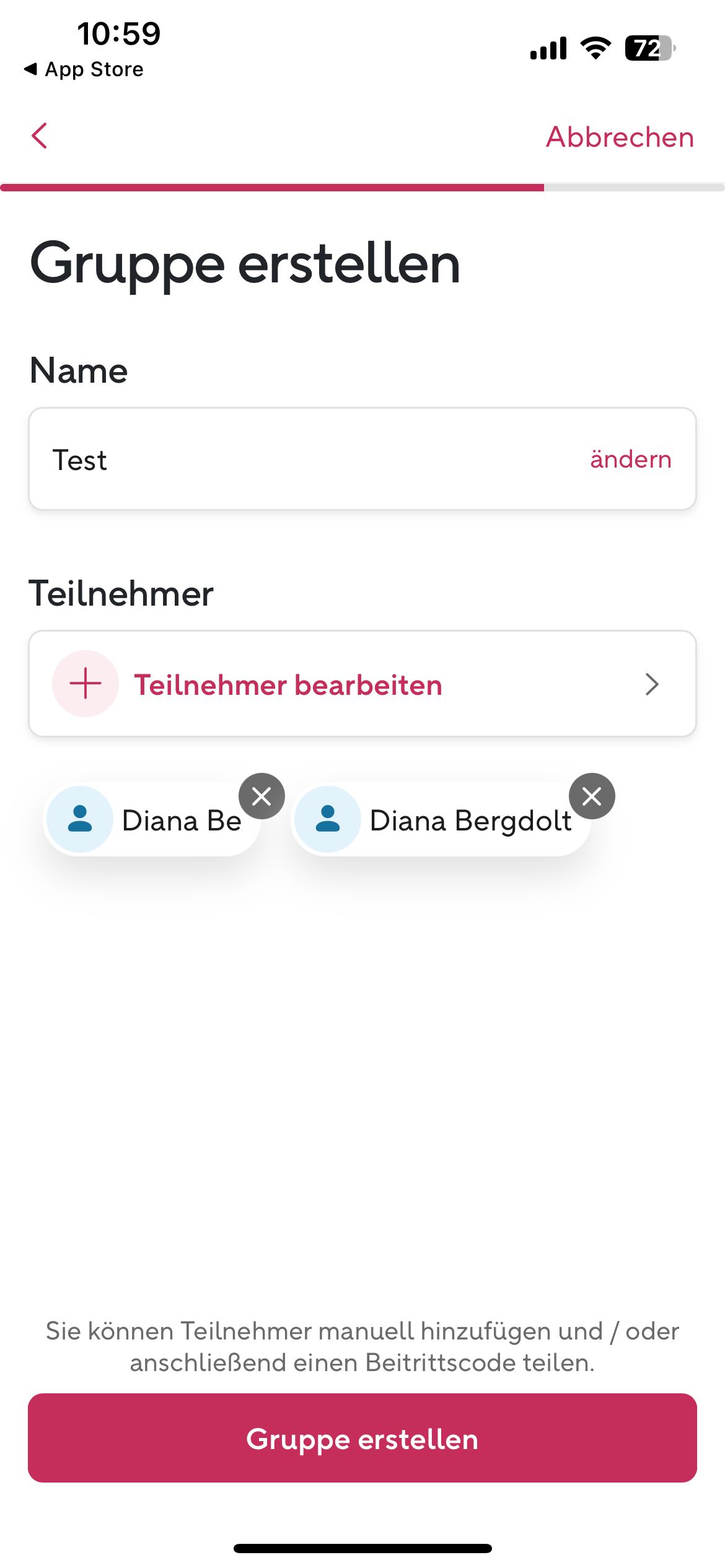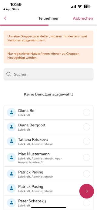 Ansicht 15 — Gruppe erstellen (Teilnehmer)