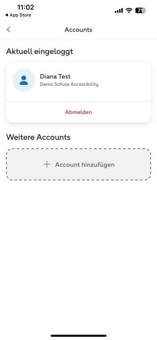 Ansicht 17 — Account wechselnMehr -> Burger-Menü oben rechts